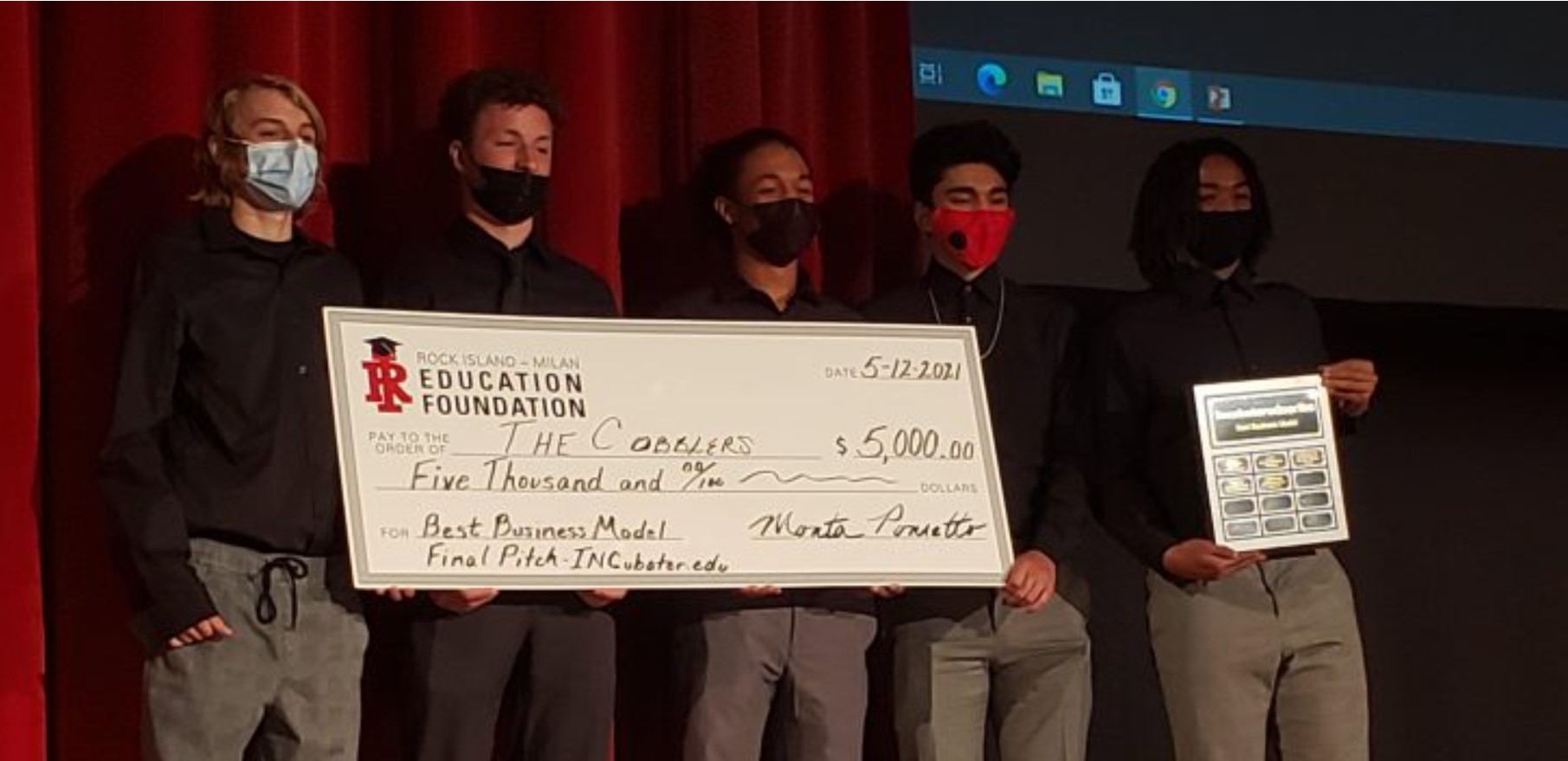 The INCubatoredu Entrepreneur and Enterprise students gave their business pitches to a row of “sharks” at FINAL PITCH NIGHT on Rock Island Student Entrepreneurs Win Business Awards in the Rock Island High School Auditorium. Five entrepreneur teams vied for three awards: Best Pitch Award, Best Business Potential Award, and Best Business Model Award.