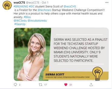 Thankfully, Sierra was approached last year by a teacher at her school to apply to their new Entrepreneurship and Innovation Center (EIC)’s program, (powered by INCubatoredu, high school entrepreneurship class curriculum).