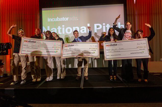 At the 11th-annual 2024 INCubatoredu National Student Pitch Event in Chicago, five student entrepreneur teams were selected to present their startup ideas to a panel of investors. From 60 teams submitting entries, these five finalists had the unique opportunity to compete for $20,000 of funding to build their businesses.