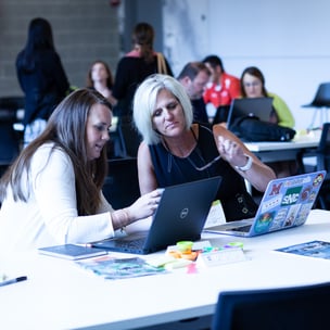 Together, they work through the Business Model Canvas, customer interviews, financials, and more ... all culminating in a teacher team pitch! With earnest smiles and laughter, successes and failures, each team is pushed out of their comfort zone, and ultimately, takes away what it will be like for students in their classrooms in the weeks to come.