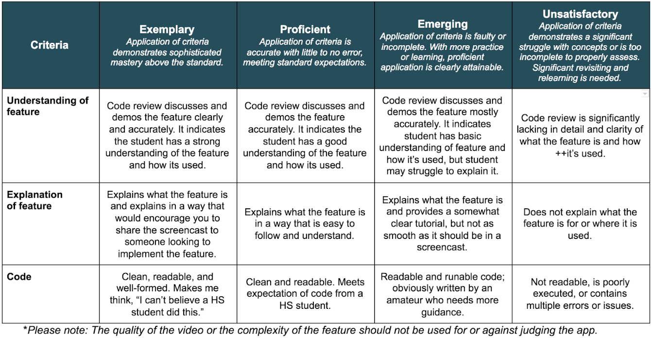 An out of the classroom contest that encourages students to research and develop features not directly taught by their teacher to add to a new app, or an app already developed for the course.